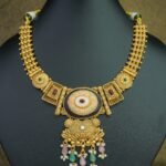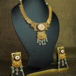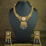 Artistic Techniques: The set showcases Meenakari, a traditional Rajasthani enameling technique known for its intricate patterns and vibrant colors. It also features Kundan, an ancient art of setting gems in a hollowed golden framework.
